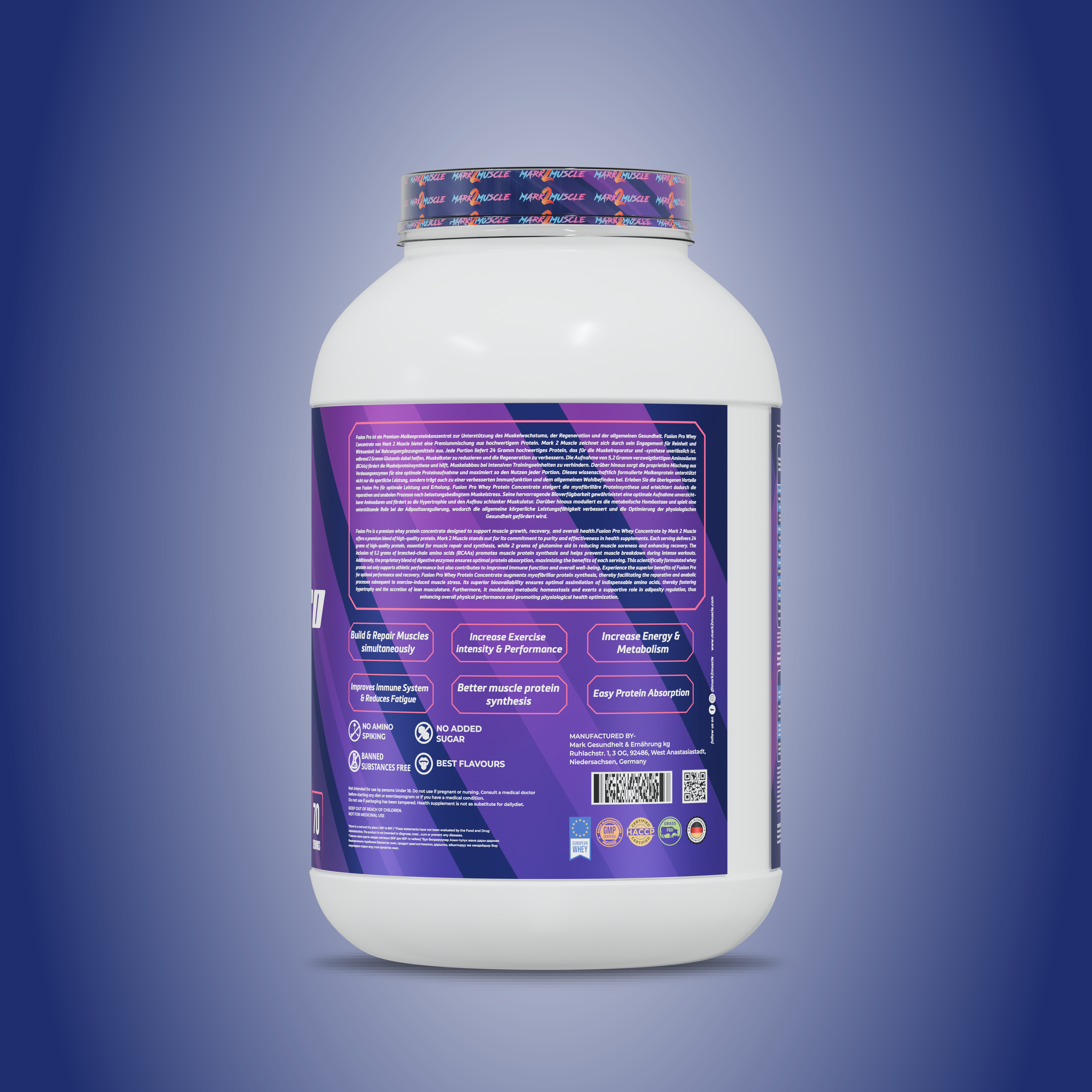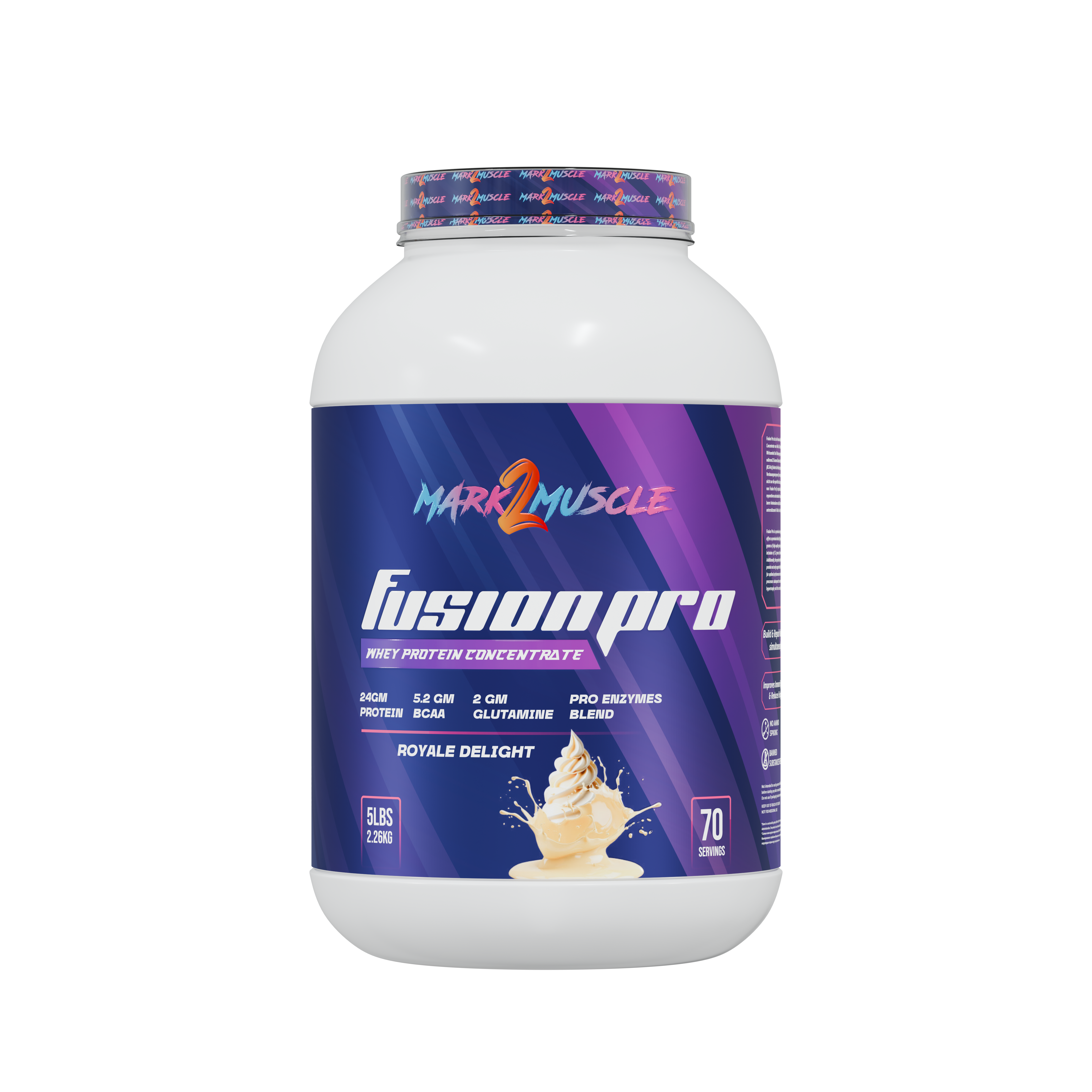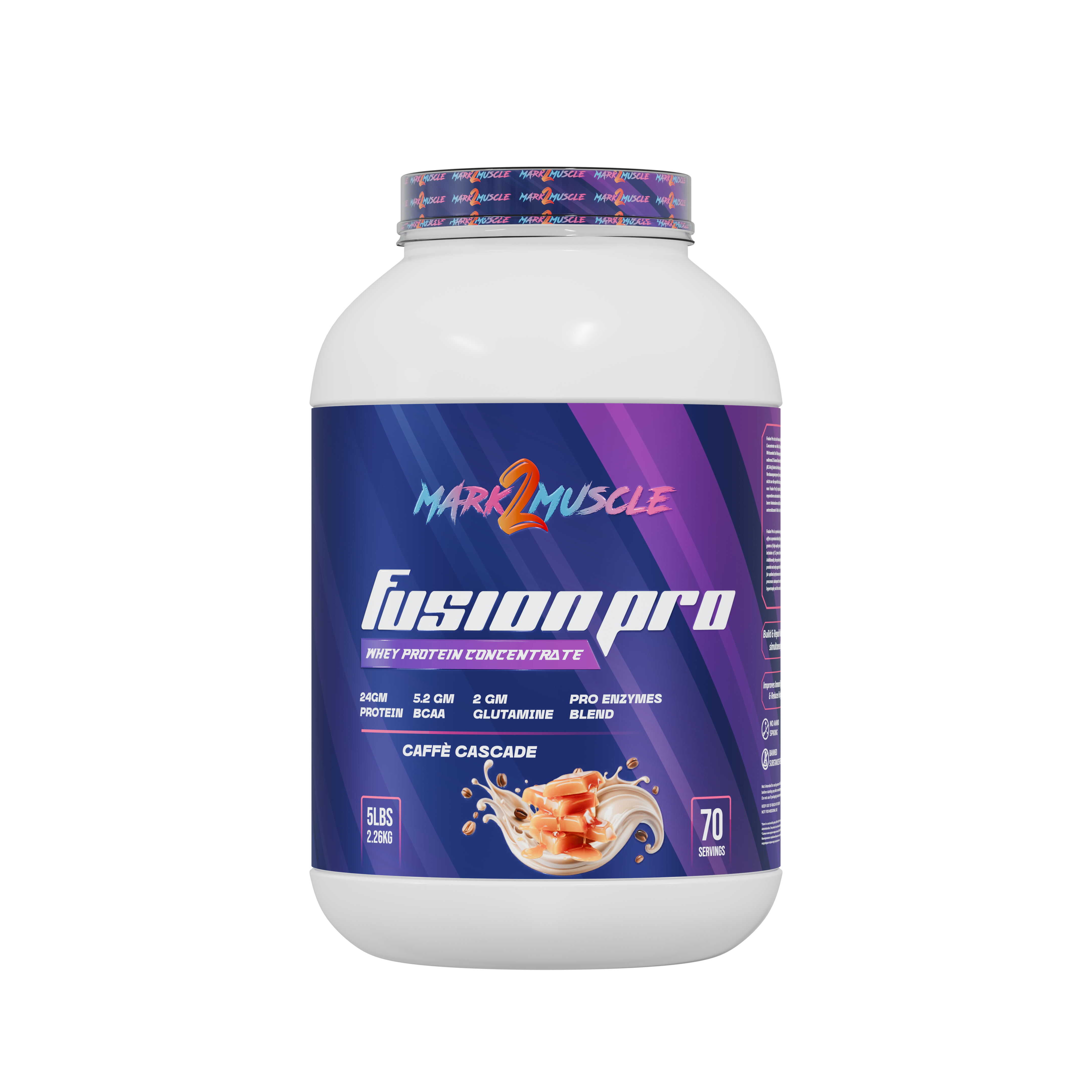 Fusion Pro is a premium whey protein concentrate designed to support muscle growth, recovery, and overall health.Fusion Pro Whey Concentrate by Mark 2 Muscle offers a premium blend of high-quality protein. Mark 2 Muscle stands out for its commitment to purity and effectiveness in health supplements. Each serving delivers 24 grams of high-quality protein, essential for muscle repair and synthesis, while 2 grams of glutamine aid in reducing muscle soreness and enhancing recovery. The inclusion of 5.2 grams of branched-chain amino acids (BCAAs) promotes muscle protein synthesis and helps prevent muscle breakdown during intense workouts. Additionally, the proprietary blend of digestive enzymes ensures optimal protein absorption, maximizing the benefits of each serving. This scientifically formulated whey protein not only supports athletic performance but also contributes to improved immune function and overall well-being. Experience the superior benefits of Fusion Pro for optimal performance and recovery. Fusion Pro Whey Protein Concentrate augments myofibrillar protein synthesis, thereby facilitating the reparative and anabolic processes subsequent to exercise-induced muscle stress. Its superior bioavailability ensures optimal assimilation of indispensable amino acids, thereby fostering hypertrophy and the accretion of lean musculature. Furthermore, it modulates metabolic homeostasis and exerts a supportive role in adiposity regulation, thus enhancing overall physical performance and promoting physiological health optimization.